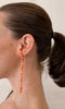 Single long strand earring made with coral and gold plated silver. Made on a post, the top part of the earring gently tucks into the ear.