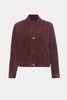 Boxy spread collar jacket with snap button closure in stretchy tailored cotton corduroy.