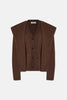 This cardigan blends cozy texture with a contemporary silhouette, featuring structured shoulders and an integrated scarf detail that adds versatility and modern edge. Designed with a button-front closure and a relaxed fit.